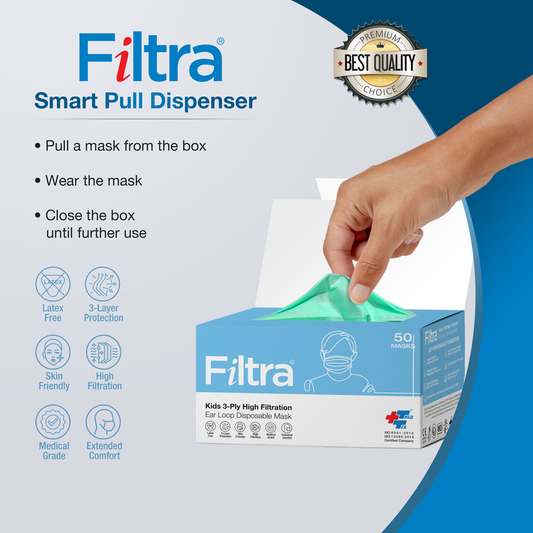 Green 3-Ply Ear Loop Kids Mask Box of 50 Masks