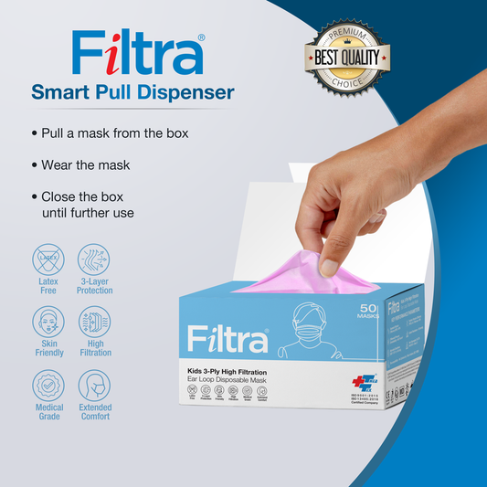 Pink 3-Ply Ear Loop Kids Mask Box of 50 Masks