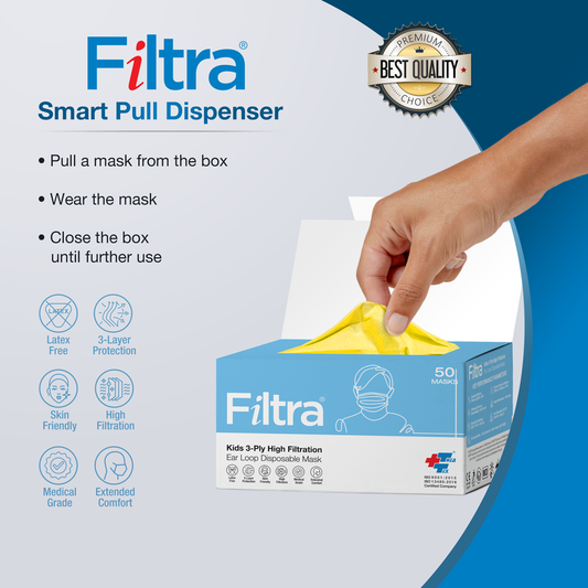 Multi Colour 3-Ply Ear Loop Kids Mask Pouch of 20 Pcs Masks