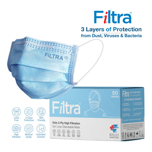 Blue 3-Ply Ear Loop Kids Mask Box of 50 Masks