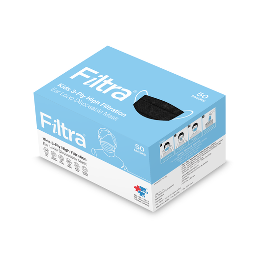 Black 3-Ply Ear Loop Kids Mask Box of 50 Masks