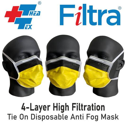 Yellow 4-Ply Tie On Anti Fog Mask Box of 50 Masks