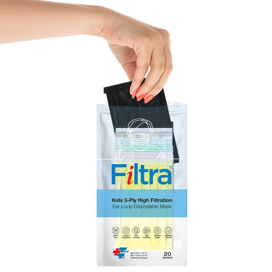 Multi Colour 3-Ply Ear Loop Kids Mask Pouch of 20 Pcs Masks