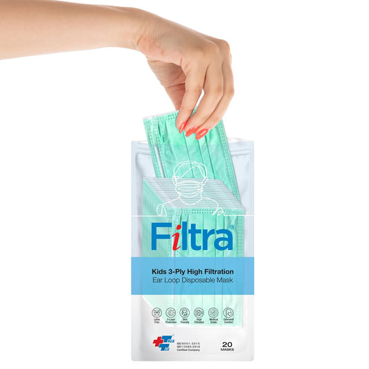 Green 3-Ply Ear Loop Kids Mask Pouch of 20 Pcs Masks