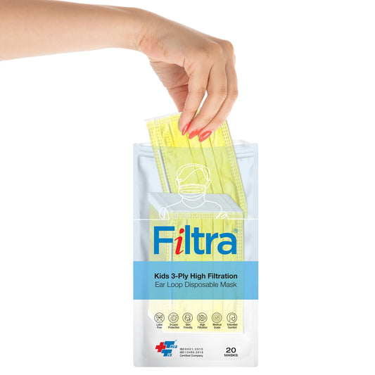 Yellow 3-Ply Ear Loop Kids Mask Pouch of 20 Pcs Masks