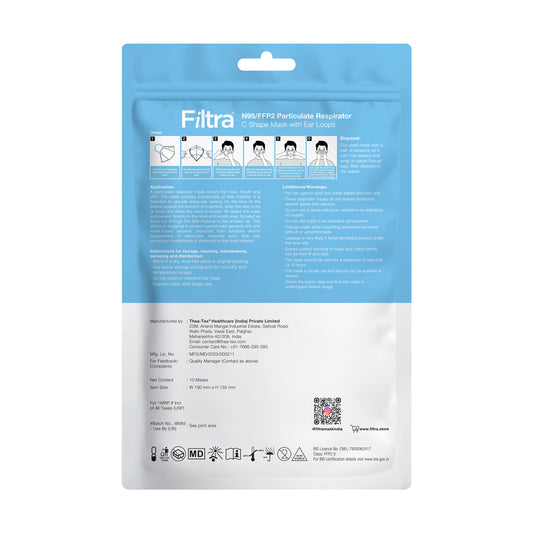 White N95 Mask with Ear Loops Pouch of 10 Masks