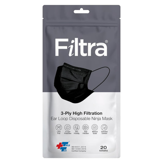 Black+Black 3-Ply Ear Loop Surgical Mask & N95 Mask with Ear Loops Pouch of 20+Pouch of 10 Masks