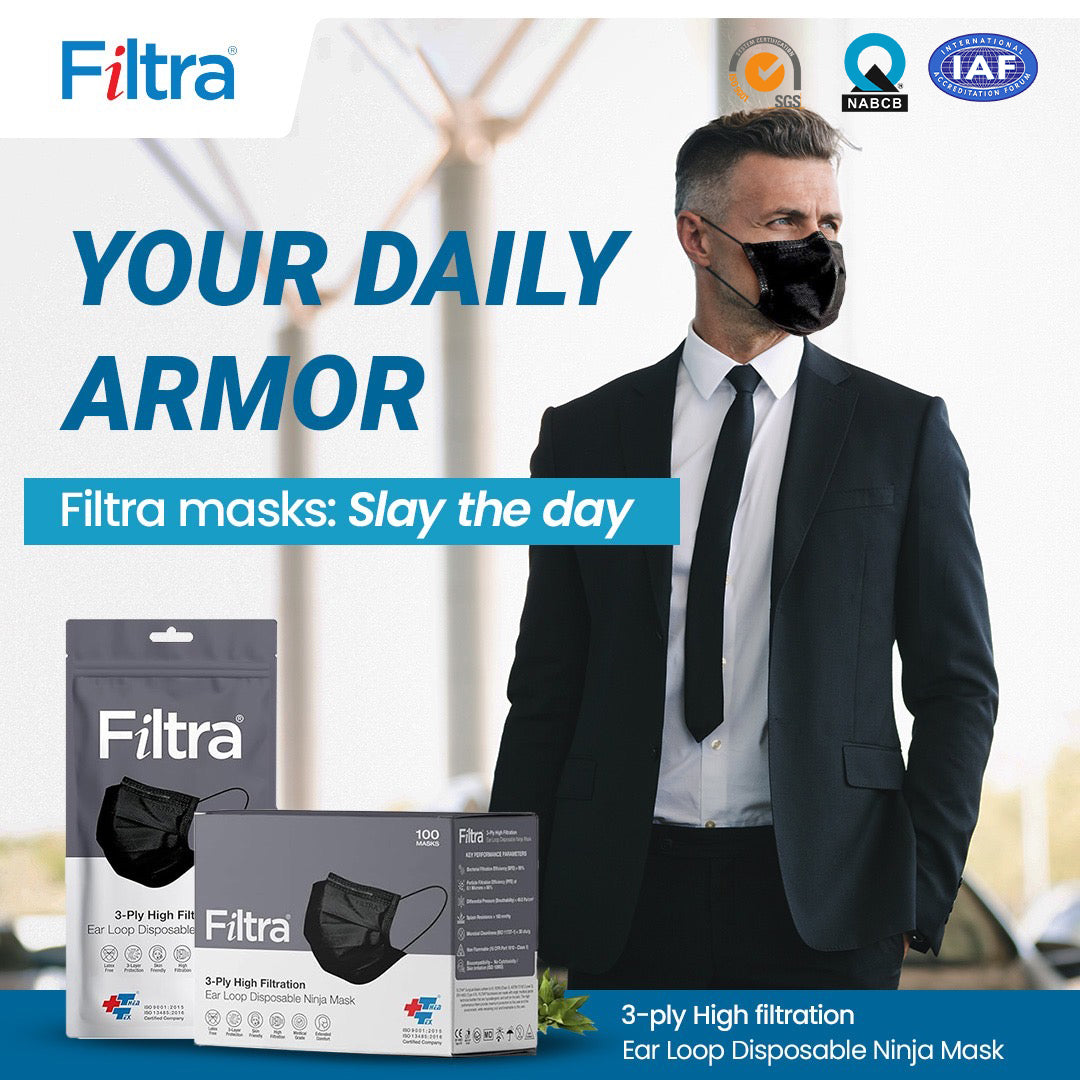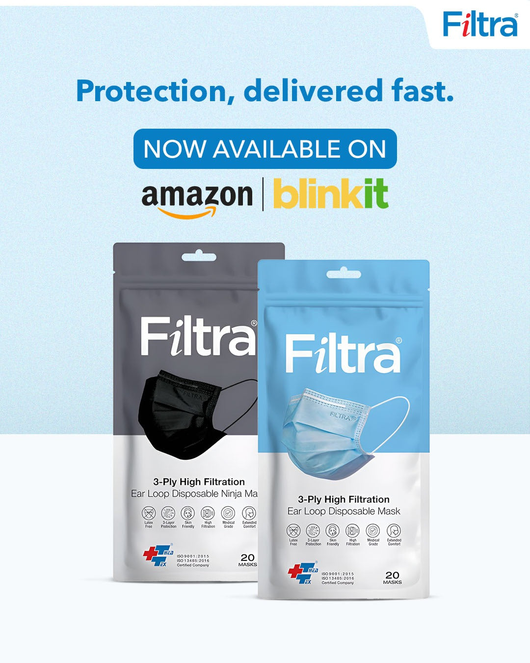 Using Filtra masks for office and travel. The build quality is excellent and it gives a secure fit. Looks premium and feels trustworthy. Good finishing and proper sealing inside the pack.