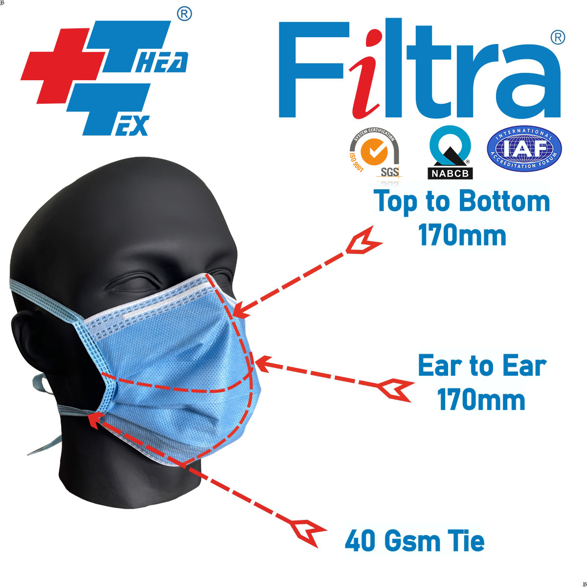 - 40 gsm strong ties. Extra long twin core soft nose clip for secure face fit reduces air leakage.