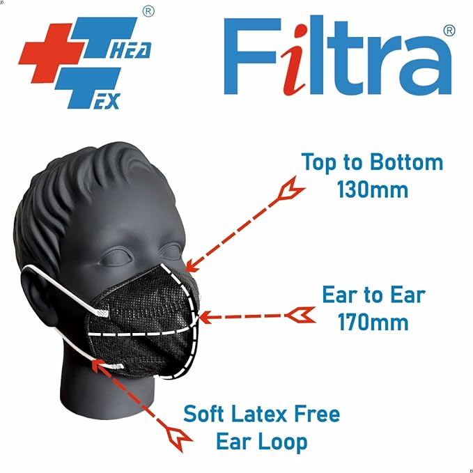 Filtra Kids’ N95 Mask is a high filtration particulate respirator mask with good breathability. The mask uses hypoallergenic technical textiles that are soft on the skin and cool, yet at the same time offer the highest possible particulate protection. The mask has extra soft latex free elastic for comfort and no metal clips inside for extra safety. Instructions for use: Open dispenser box and remove a single mask. Identify the correct way up based on the mask printing and reference to the image on the box front. Pull the mask over the mouth and nose, and hook the elastic behind the ears. Adjust for comfort Warnings & Limitations: Use within 3 years of Mfg Date Discard after 8 hours continuous usage Remove immediately in
