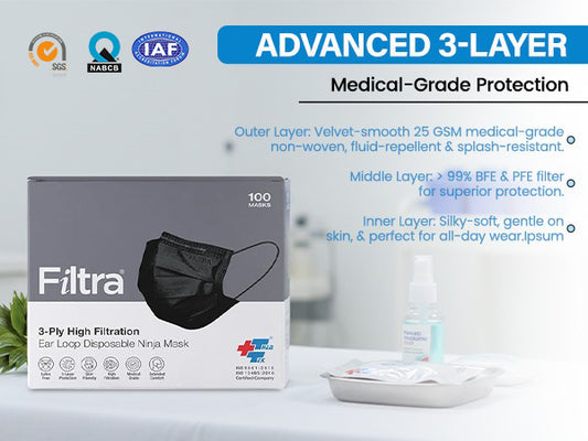 Black 3-Ply Ear Loop Surgical Mask Pack of 3 Boxes X 100 Masks